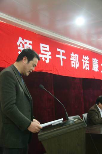 為深入推進廉潔水務建設,3月14日集團領導班子成員向全體干部職工公開承諾:從自己做起,帶頭執行廉潔自律的各項規定。圖為黨委書記、董事長帶頭諾廉。